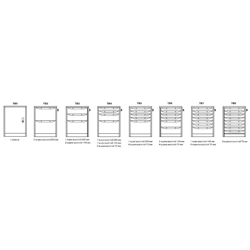 Тумба ТВ4 в комплекте — это четыре выдвижных ящика, которые помогают держать рабочее место в порядке: ключи, сверла, измерительный инструмент и мелкая фурнитура не теряются и не мешают на столе. Для запирания предусмотрены петли под навесной замок. Каждый ящик выдерживает до 45 кг распределённой нагрузки — можно смело хранить тяжелый инструмент и оснастку.
