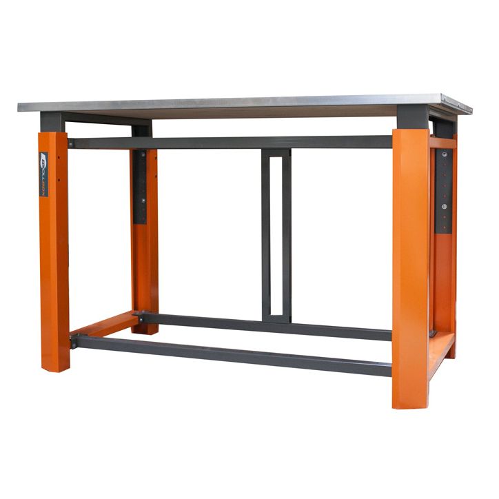 Главная особенность модели — регулируемая по высоте столешница. Вы можете настроить рабочую зону под свой рост и задачи в диапазоне 924–1044 мм: удобно, когда за верстаком работают разные люди или когда часть операций хочется выполнять «выше», а часть — ближе к поверхности.