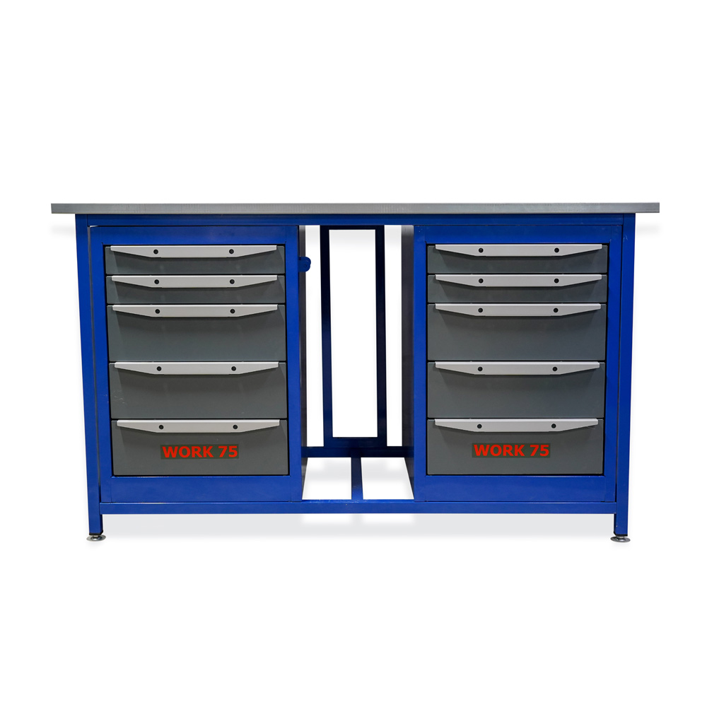 Верстак Work WK1500(Т5-Т5) — это готовое рабочее место для мастерской, гаража или участка сборки, где важны порядок, запас прочности и удобный доступ к инструменту. Модель продумана так, чтобы сочетать надежную «слесарную» базу и вместительное хранение: по центру — широкая рабочая зона, по бокам — две тумбы, которые берут на себя всю рутину с расходниками и оснасткой.